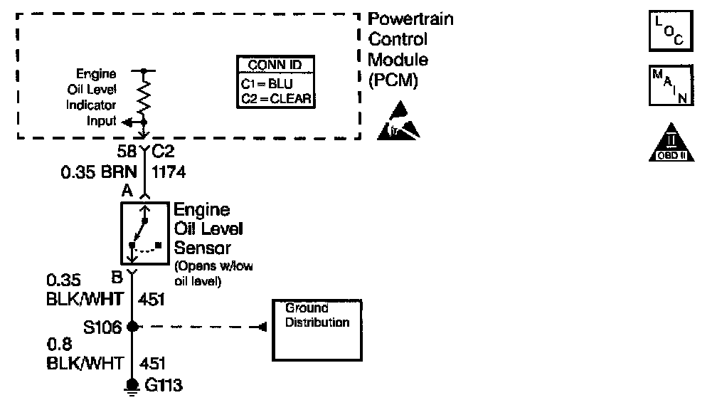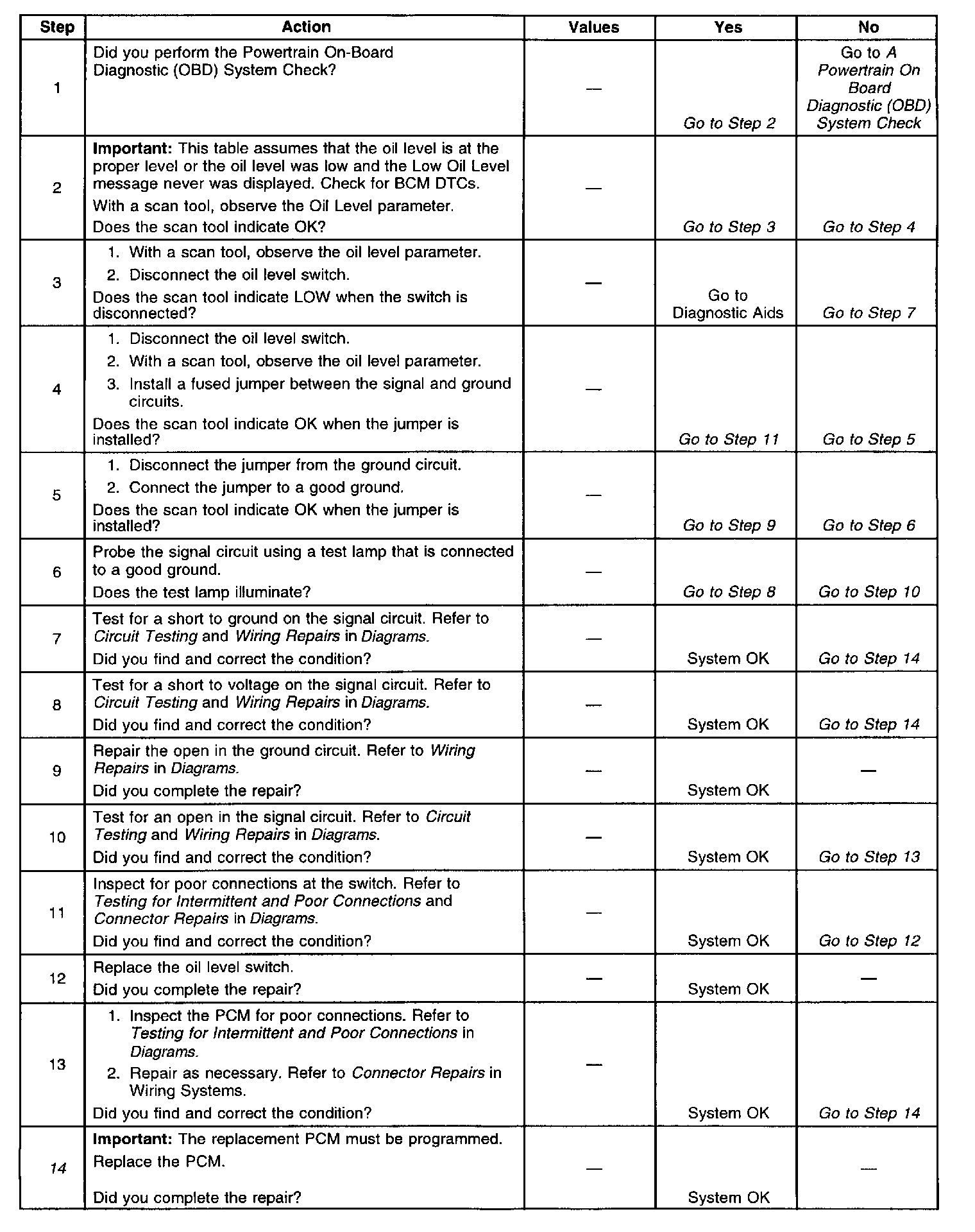 ^ Poor connection at PCM or oil level sensor - Inspect harness connectors for the following conditions: