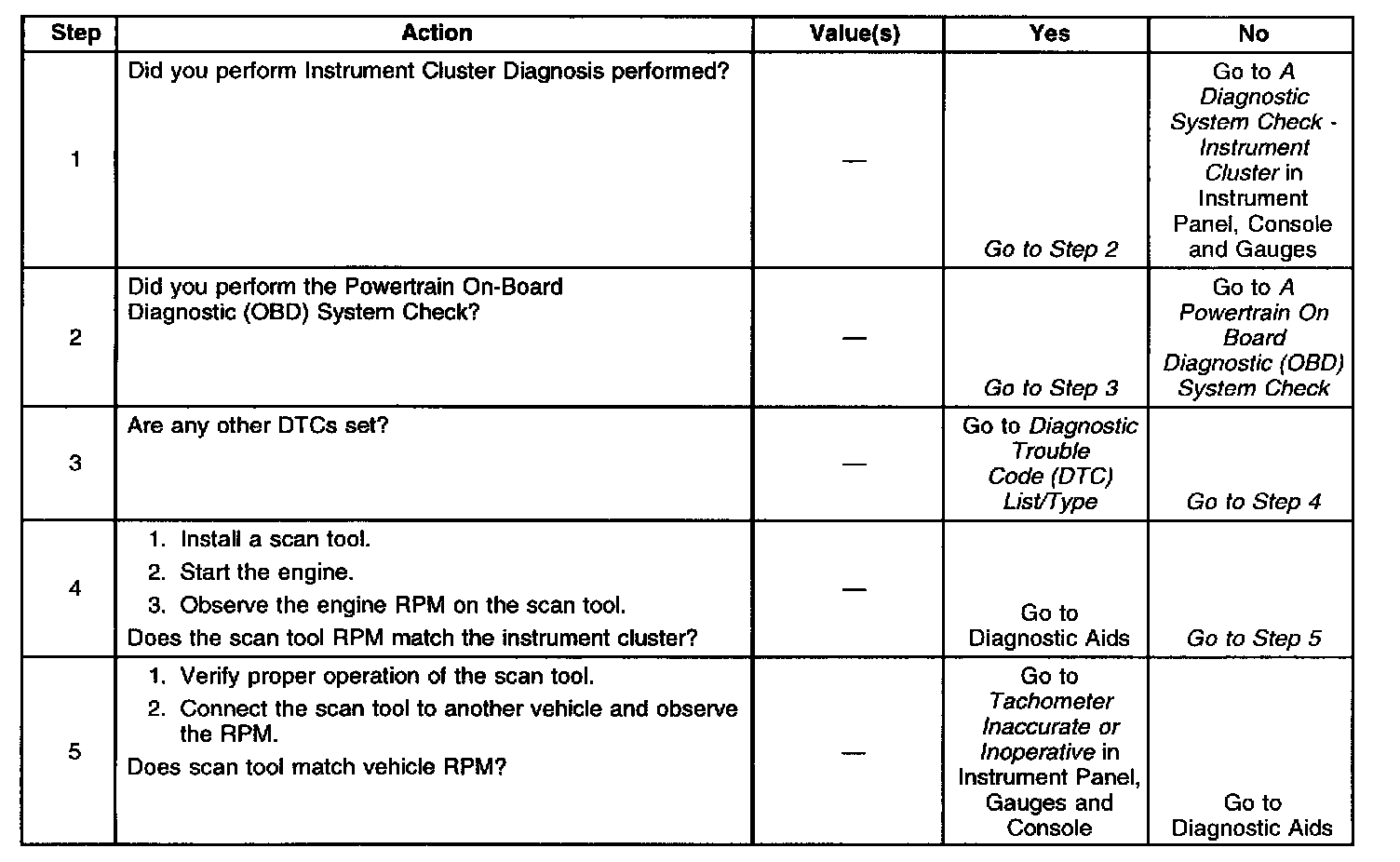 Refer to A Diagnostic System Check - Instrument Cluster in Instrument Panel, Gauges and Warning Indicators for additional diagnostic information. Testing and Inspection
