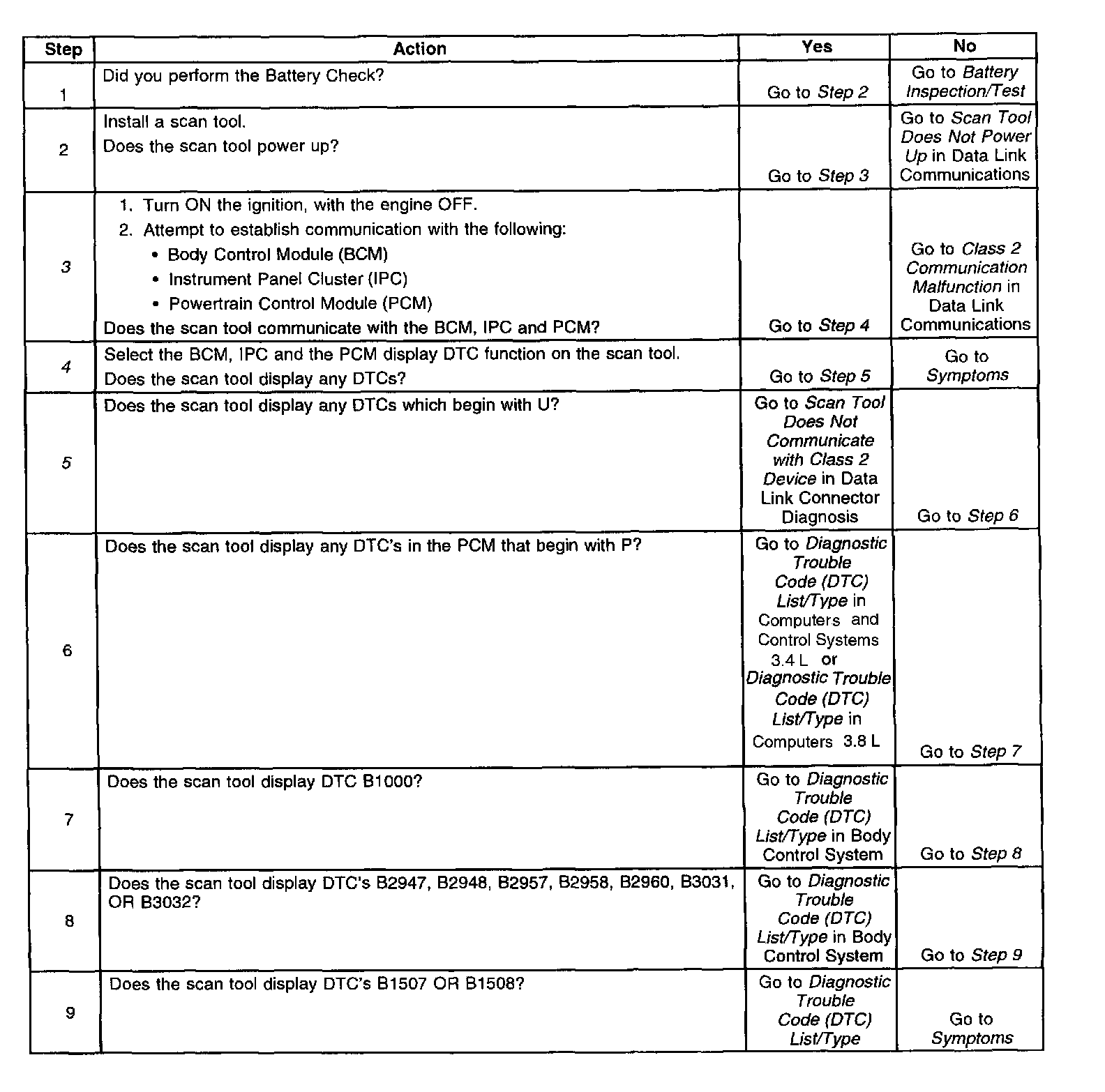 3. Lack of communication may be due to a partial malfunction of the class 2 serial data circuit or due to a total malfunction of the class 2 serial data circuit. The specified procedure will determine the particular condition.