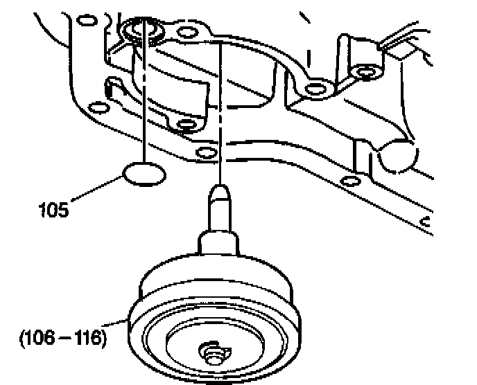 5. Remove the manual 2-1 band servo cover bolts (103) from the 2-1 band servo (104).