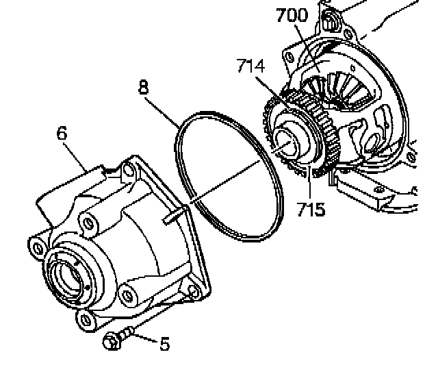 2. Rotate the differential carrier until the end of the output shaft can be seen and the differential pinion shaft (701) is in a horizontal position.