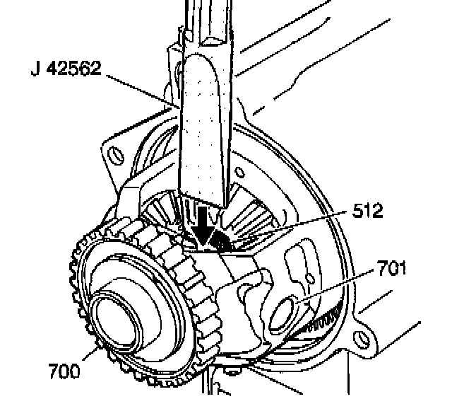 3. Place J 42562 between the end of the output shaft and the differential pinion shaft.