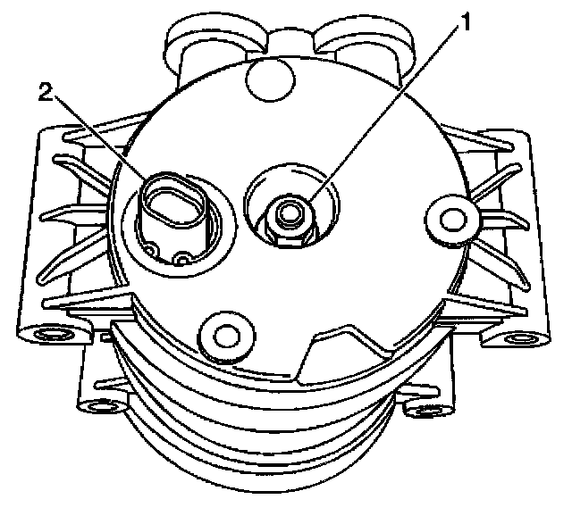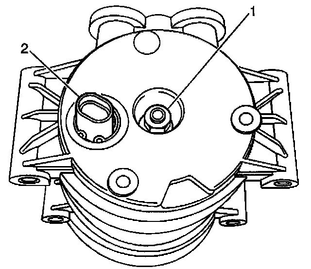 4. Disconnect the electrical connector (2) from the A/C compressor high pressure cutoff switch.