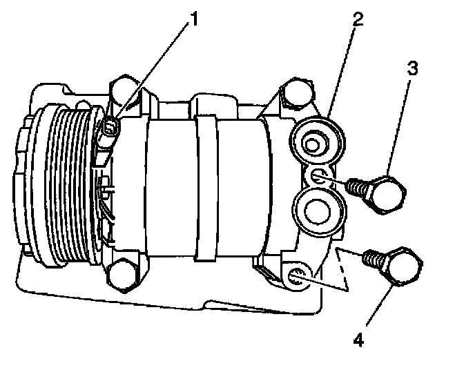 - Tighten the compressor bolts (4) to 50 N.m (37 lb ft).