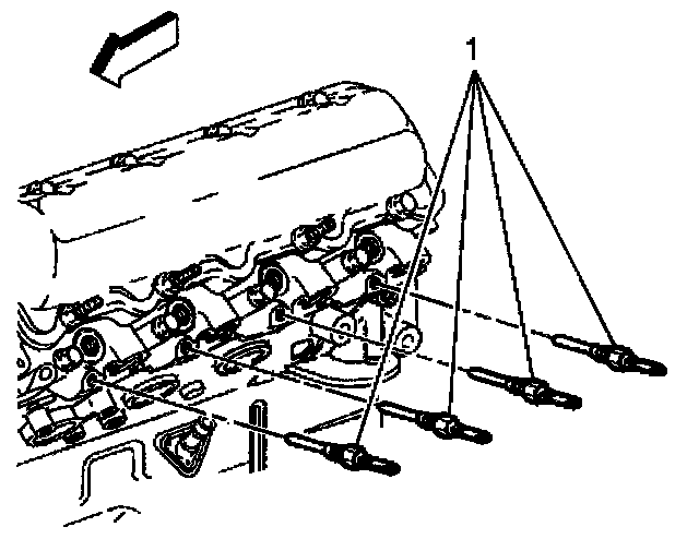 3. Remove the glow plugs (1) from cylinders 1, 3, 5 and 7. If a glow plug is damaged during removal, refer to Damaged Glow Plug Removal.