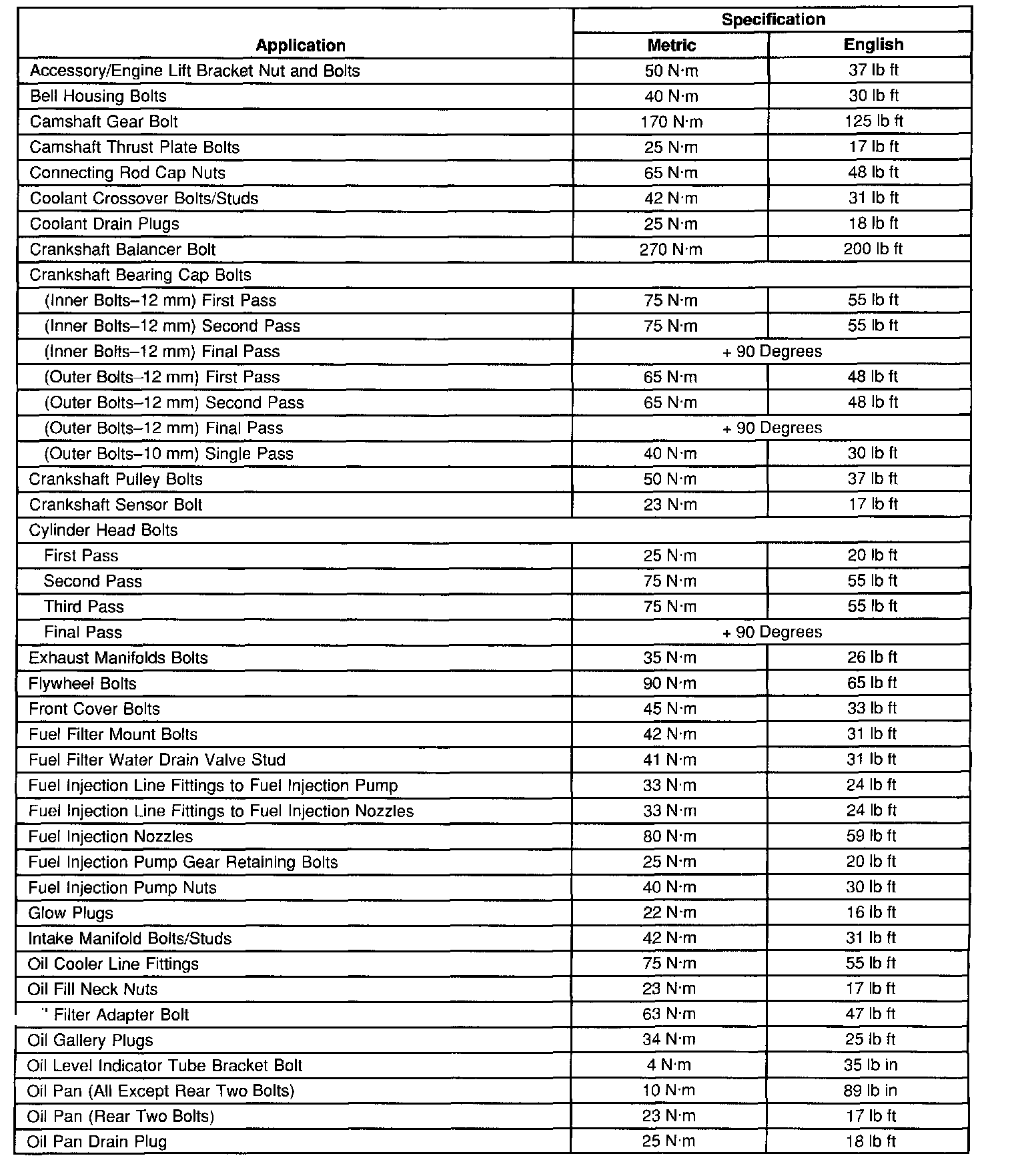 Fastener Tightening Specifications