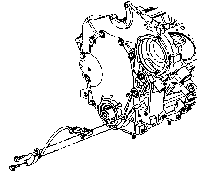 9. Install the lower crankshaft position sensor wiring harness bracket to the engine front cover. Connect the crankshaft position sensor wiring harness electrical connector.