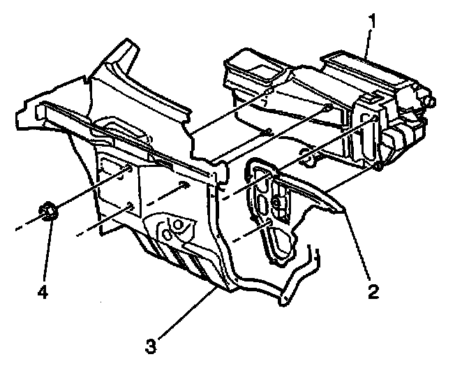 2. Install the A/C module nuts (4) in the engine compartment.