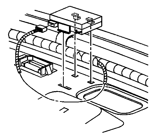 3. Remove the remote door lock receiver. The receiver is located between the rear package shelf and the rear package shelf cover, just to the right of the center access hole. Compress the retaining tabs. Slide the remote door lock receiver down through the access hole.