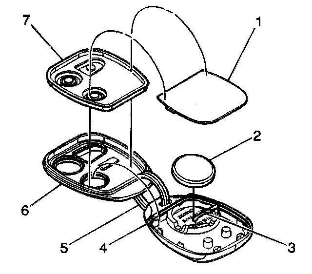 1.1. Insert a small screwdriver between the two halves of the transmitter case (6, 4) at the slot provided near the key ring hole (5).