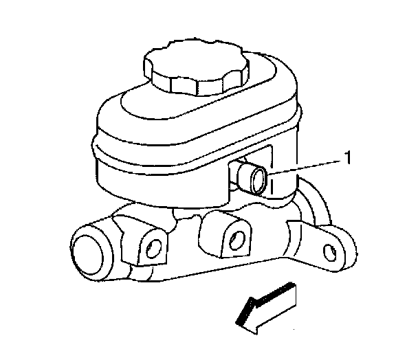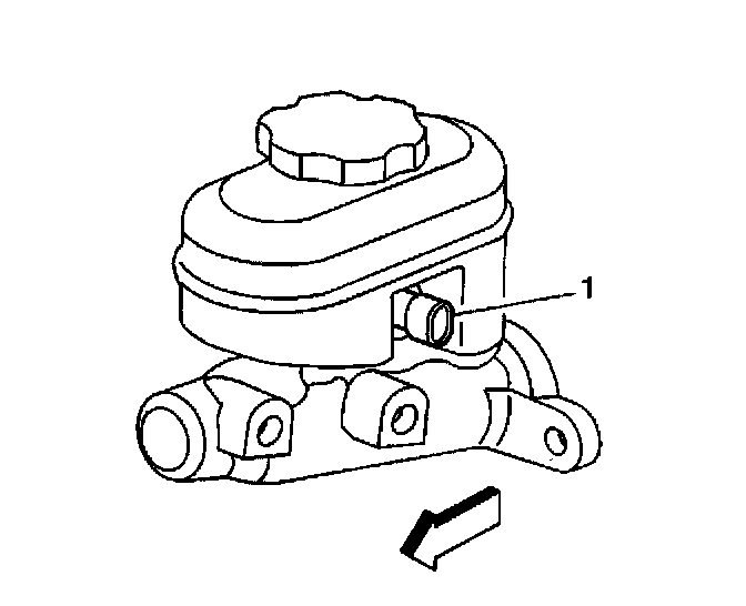 1. Install the fluid level switch (1) into the master cylinder reservoir until the locking tabs snap in place.