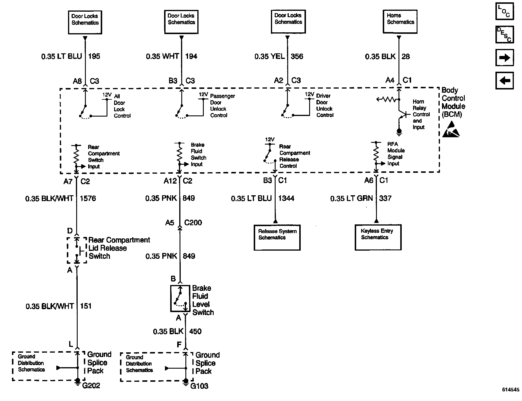 Body Control Module Schematics: Door Lock And Unlock Controls, Horn Relay Control, Rear Lid Releases Switch And Brake Fluid Level Switch: