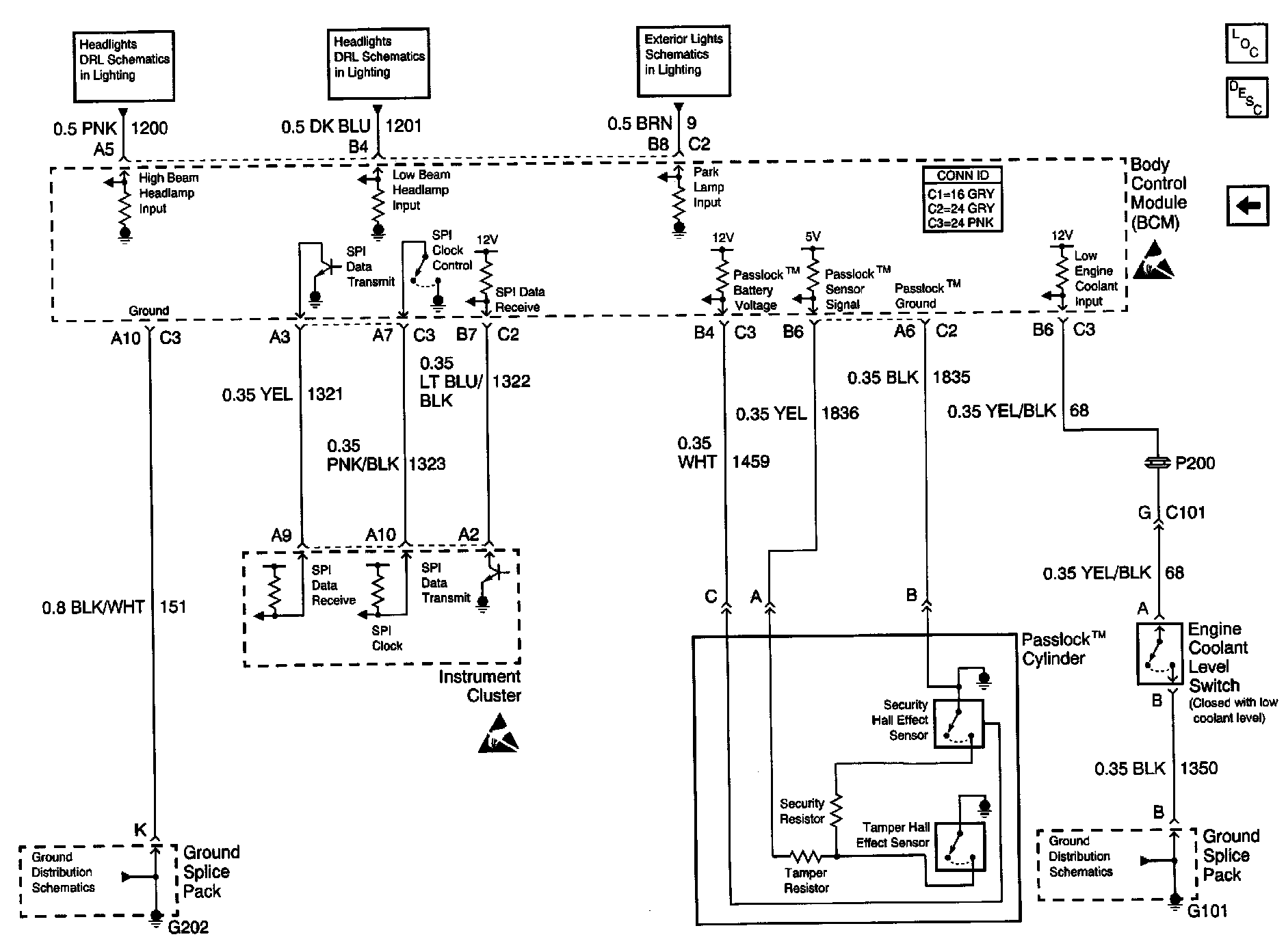 Body Control Module Schematics: Instrument Cluster, Passlock(TM) Cylinder, Lighting Inputs And Coolant Level Switch: