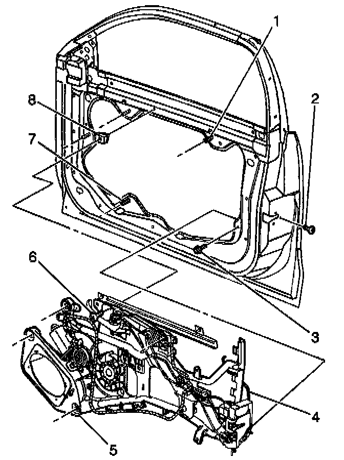 7. Remove the door locking system module (5) from the door.