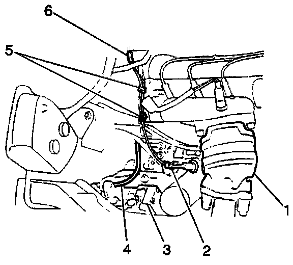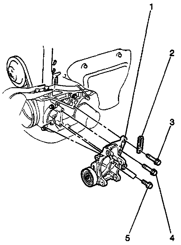 10. Remove the 4 bolts (3,4,5) and the compressor mounting bracket from the vehicle.