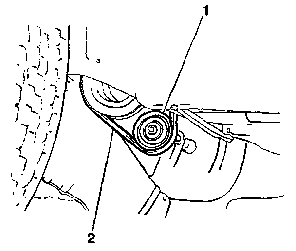 7. Remove the compressor drive belt (2) from the clutch pulley.