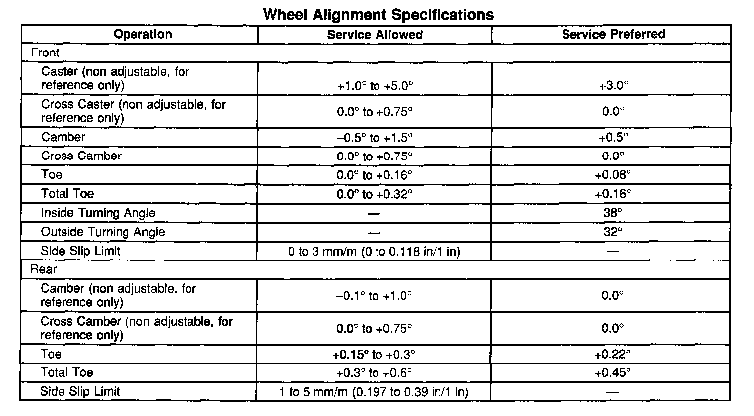 Wheel Alignment Specifications