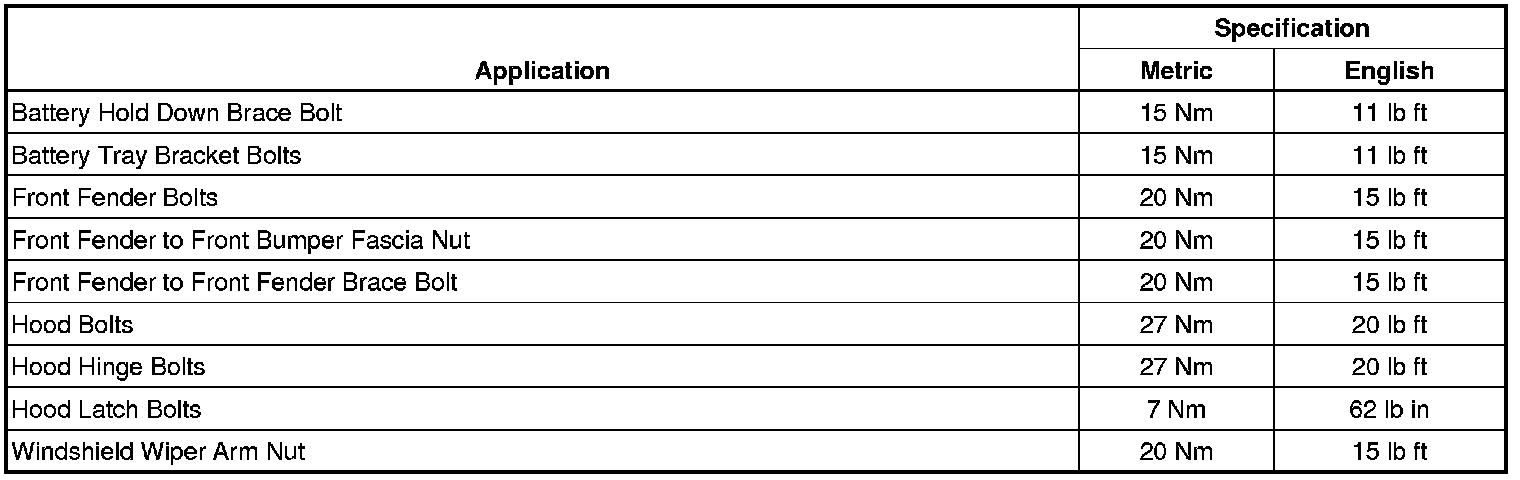 Fastener Tightening Specifications - Front End