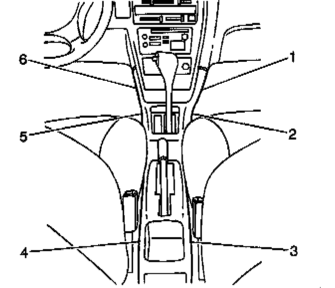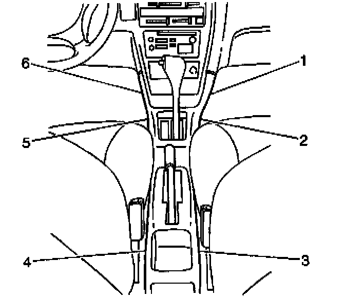 2. Remove the 6 screws (1,2,3,4,5,6) from the center console.