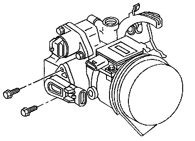 2. Install the two TP sensor attaching screws, using a thread-locking compound on the screws. LOCTITE 262(R), GM Part No.1052624, or equivalent should be used.