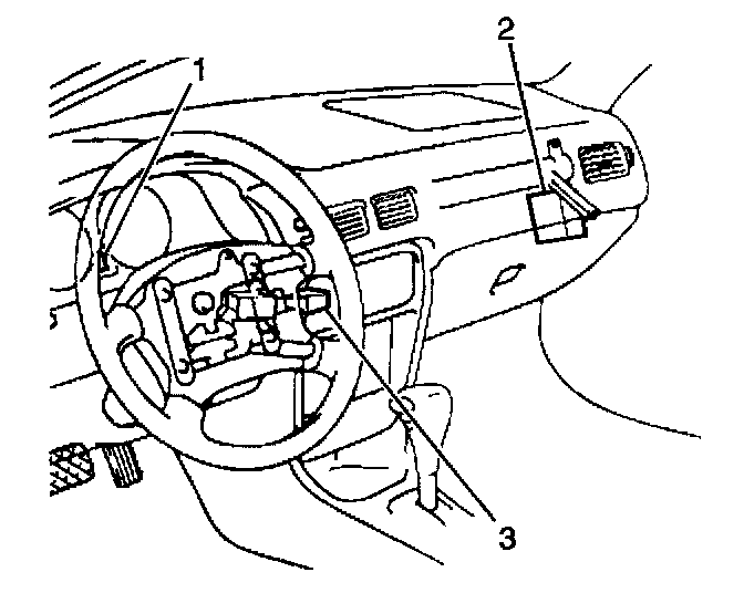 The cruise control module (2) is located to the right of the instrument panel compartment. The main function of the cruise control module is to monitor and act upon input signals from the cruise control switch and the Vehicle Speed Sensor (VSS).There are tour different categories of input signals received by the cruise control module. These four categories are ON/OFF, speed control, throttle position and cancel. The ON/OFF input signal to the cruise control module is provided by the cruise control switch and simply activates and de-activates the cruise control system. The speed control input signals to the cruise module are provided by the cruise control switch and the VSS. Speed control input signals are provided by the cruise control switch are the RES/ACC (Resume/Accelerate) signal and the SET/COAST signal. These signals are also used to initiate the tap-up and tap-down functions. The cruise control module uses these signals, in addition to the vehicle speed signal from the VSS, to determine and maintain or alter vehicle speed in accordance with the driver's commands. The throttle position signals to the cruise control module are provided by the servo and the idle switch inside the Throttle Position (TP) sensor. These signals, as their names suggest, allow the cruise control module to constantly monitor throttle position during cruise control system operation. The cancel input signals to the cruise control module are provided by the cruise control switch CANCEL signal, the stoplamp switch, the PNP switch, or the cruise control release switch. These input signals inform the cruise control module that cruise control operation should be immediately suspended.
