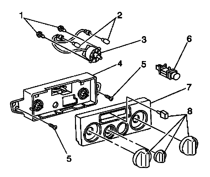 2. Remove the two screws (5) and pull the heater control (4) unit forward.