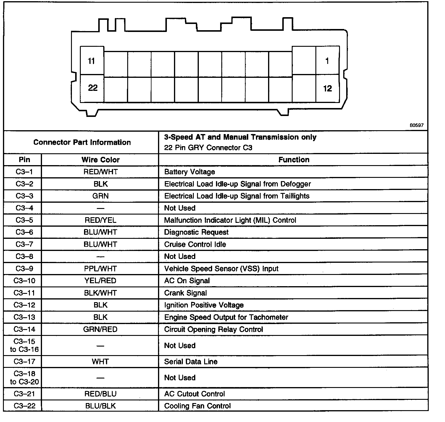 Back View Of The PCM Connector C3 (Manual And 3-Speed A/T Only):