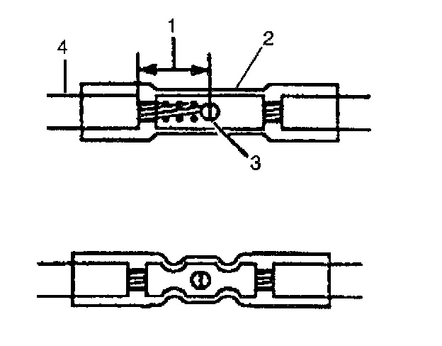 9. Insert the wires into the splice sleeve until the wire hits the barrel stop. The splice sleeve has a stop in the middle of the barrel in order to prevent the wire from passing through the splice (3).