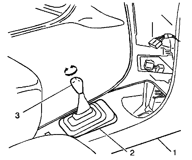 9. Remove the manual shifter knob (3) and the shifter boot (2) from the shifter lever and the front floor console (1) (M/T only).