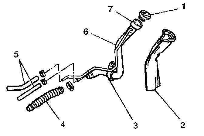 7. Pull the rubber grommet (7) away from the fuel filler pipe neck in the opening to the fuel filler door compartment.