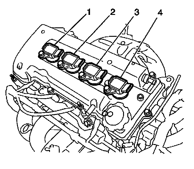 3. Remove the four ignition coils (1-4) from the cylinder head cover.