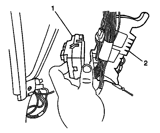 5. Disconnect the multifunction alarm module (1) from the rear of Junction Block #2 (2).
