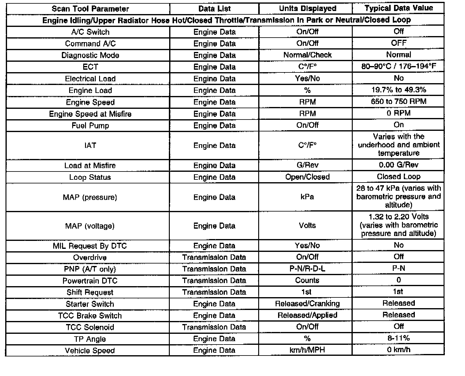 Scan tool values from a properly running Transmission may be used for comparison with the Transmission you are diagnosing. The Transmission Scan Tool Data List represents values that would be seen on a normal running engine.