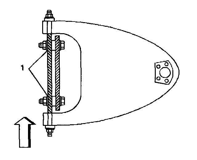 5. A normal shim pack will leave at least two threads of the bolt exposed beyond the nut (1). The difference between the front shim pack and the rear shim pack must not exceed 10 mm (0.40 inch). If you cannot meet these requirements, check for damage to the control arms and to related parts.