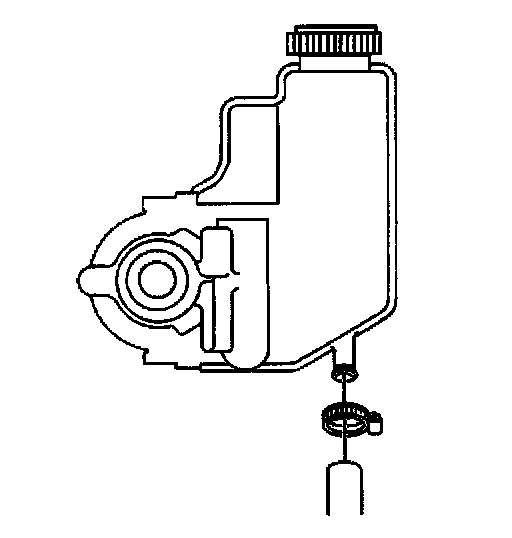 - Tighten the power steering gear return hose to the power steering pump clamp to 2 Nm (18 inch lbs.). Remove the drain pan from under the vehicle.