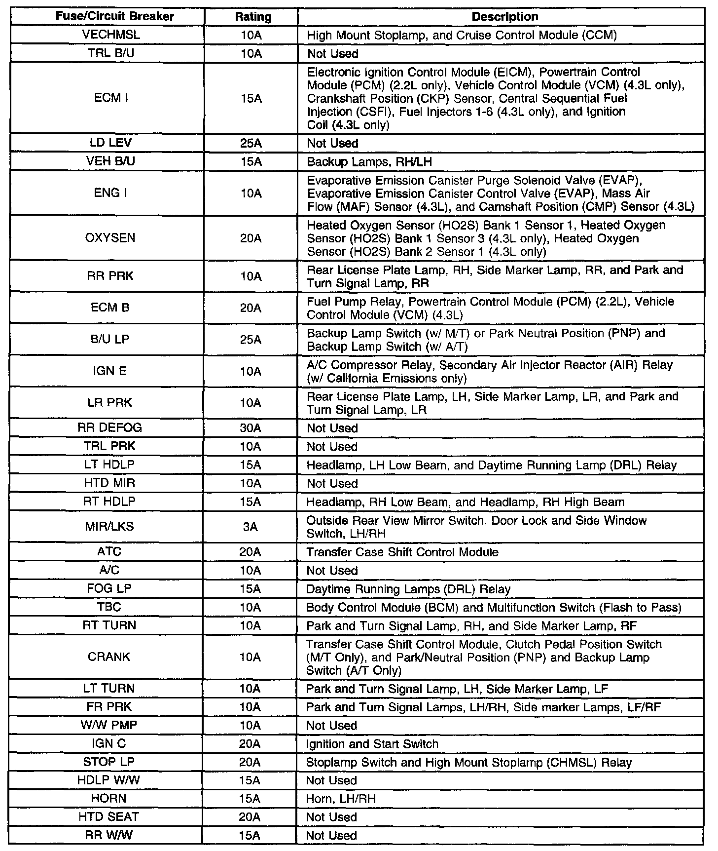 S10/T10 P/U 2WD L4-2.2L VIN 4
