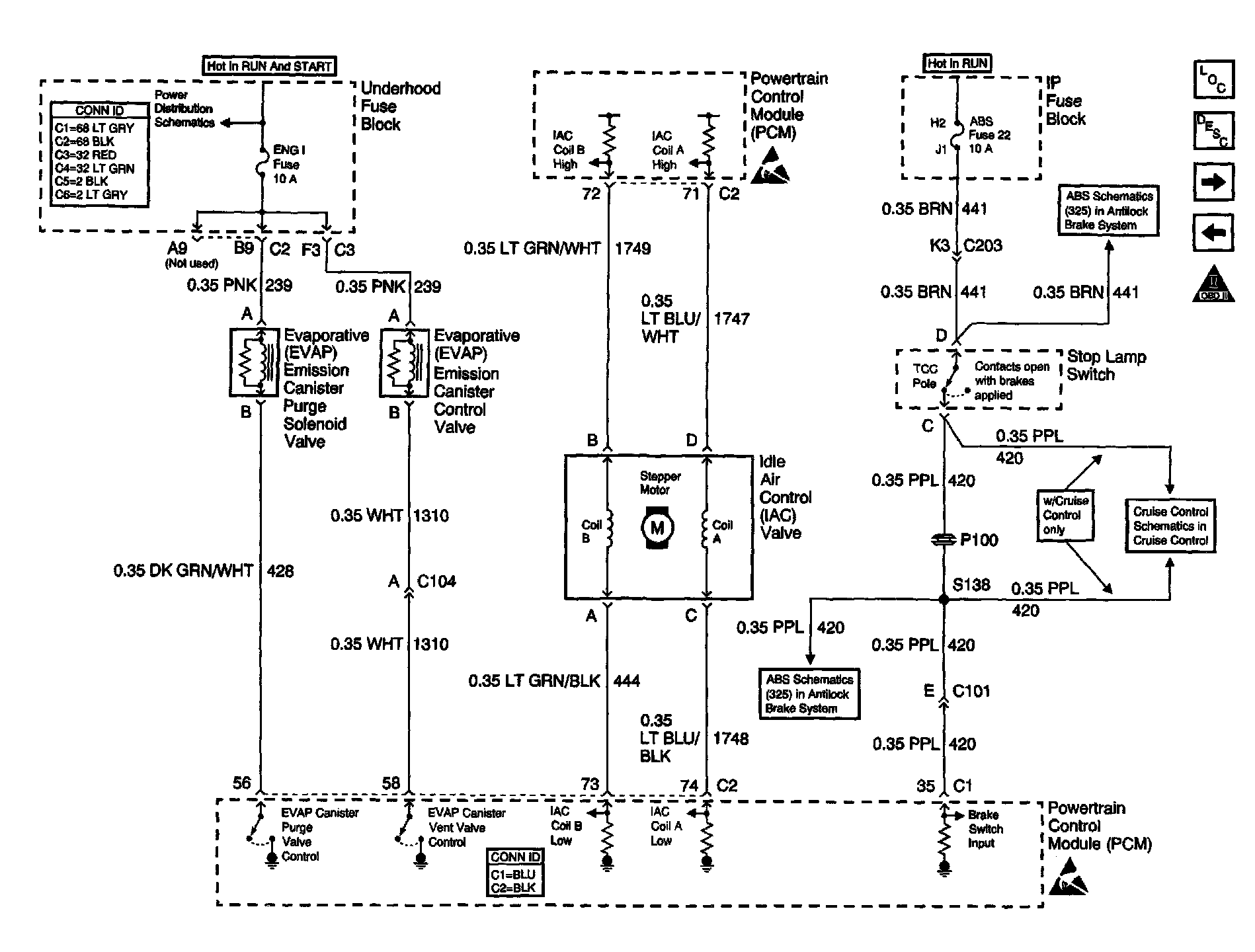 Engine Control Schematics: IAC, EVAP Valve Controls, And Stop Lamp Switch Input W/A/T:
