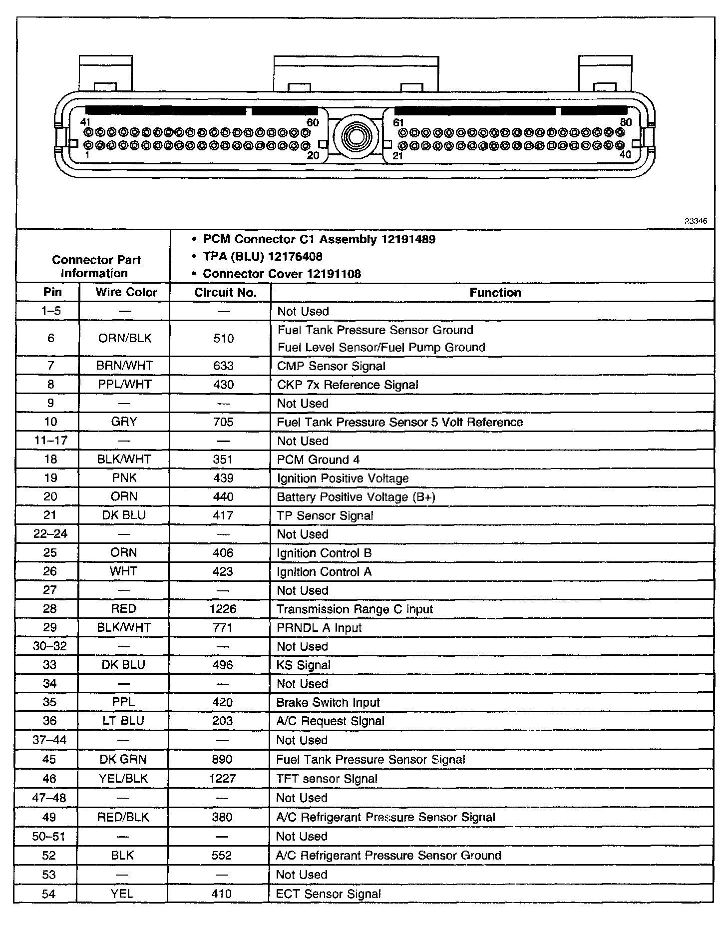 PCM Connector C1 (BLU) (Part 2 Of 2):