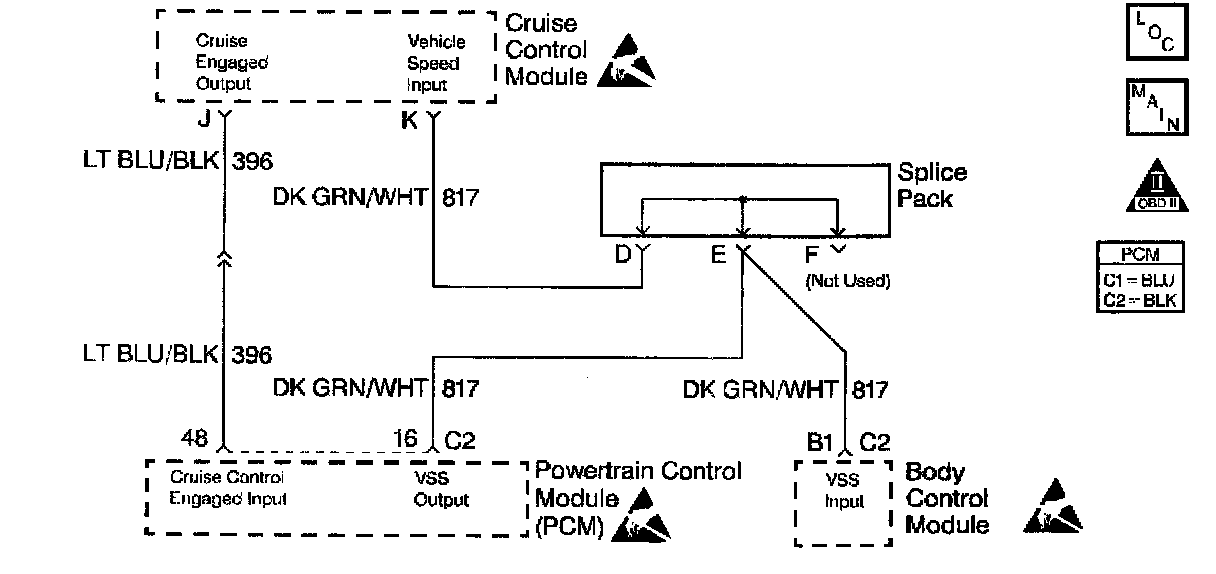 The following table will diagnose the cruise disable and cruise engaged circuits. Refer to Wiring Repairs in Diagrams when diagnosing the remaining cruise control system circuits.
