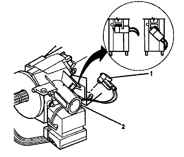 13. Press the locking tab on the end of the park lock cable assembly (1) into the slot in the electronic lock module assembly.