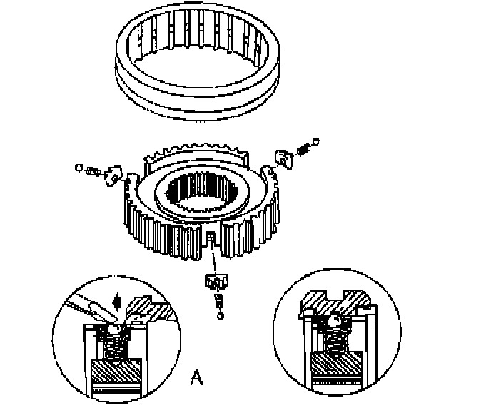 Remove the synchronizer detent balls, springs, and keys from the hub.