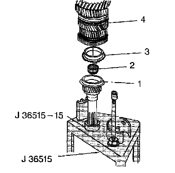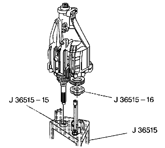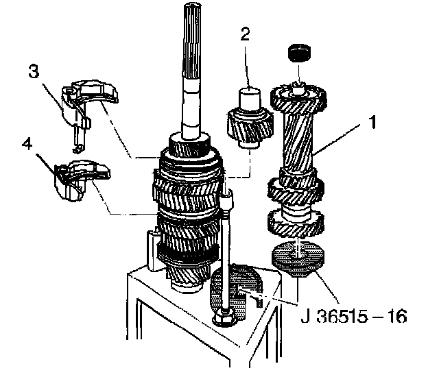 26. Install the following parts on the mainshaft and on the assembly fixture J 36515-16.