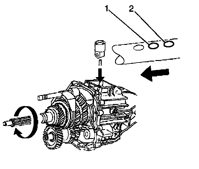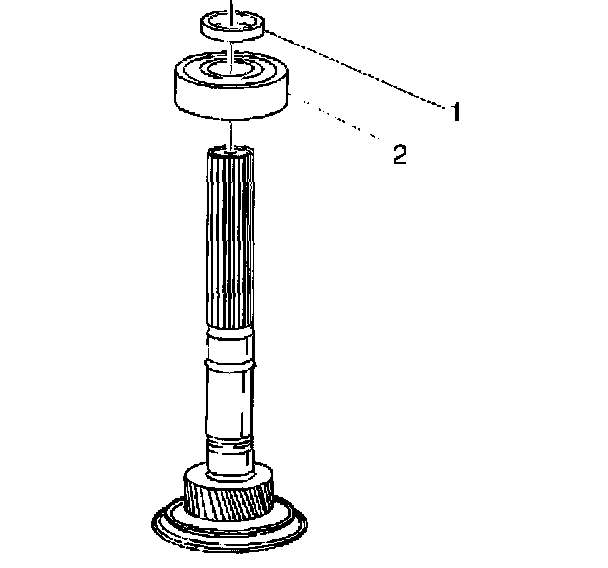 28. If RWD vehicle, install the output shaft bearing (2) on the mainshaft.
