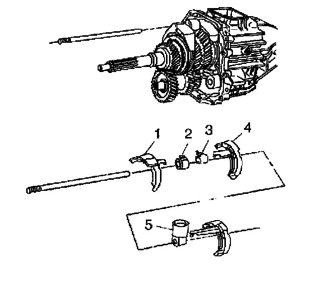 41. Install the 3rd/4th speed gear shift fork onto the 3rd/4th speed gear synchronizer sleeve. Align all three insert notches.