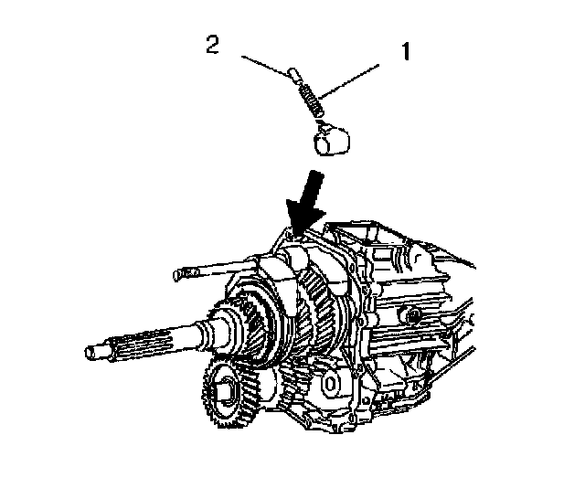 45.2. Install the spring (1) and the ball plunger (2) into the shift lever.