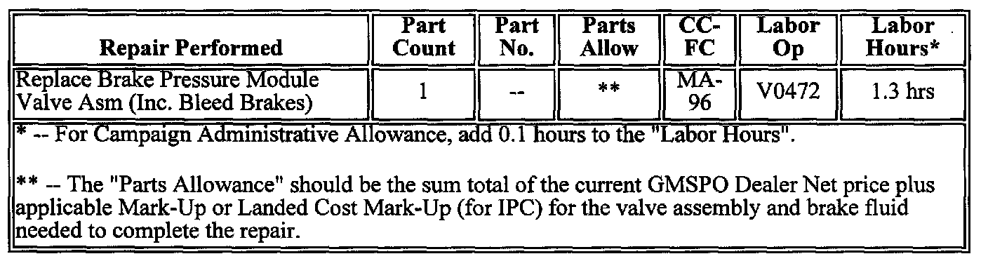 Recall - Brake Pressure Module Valve Replacement: Overview