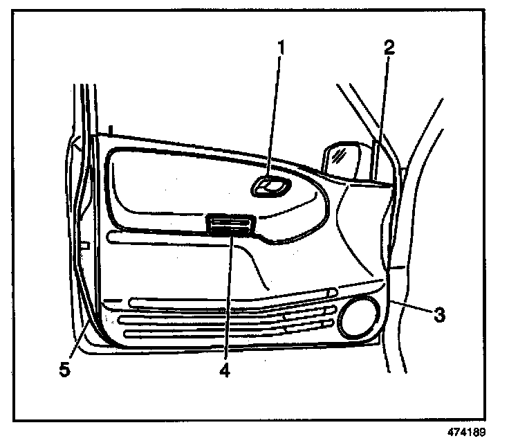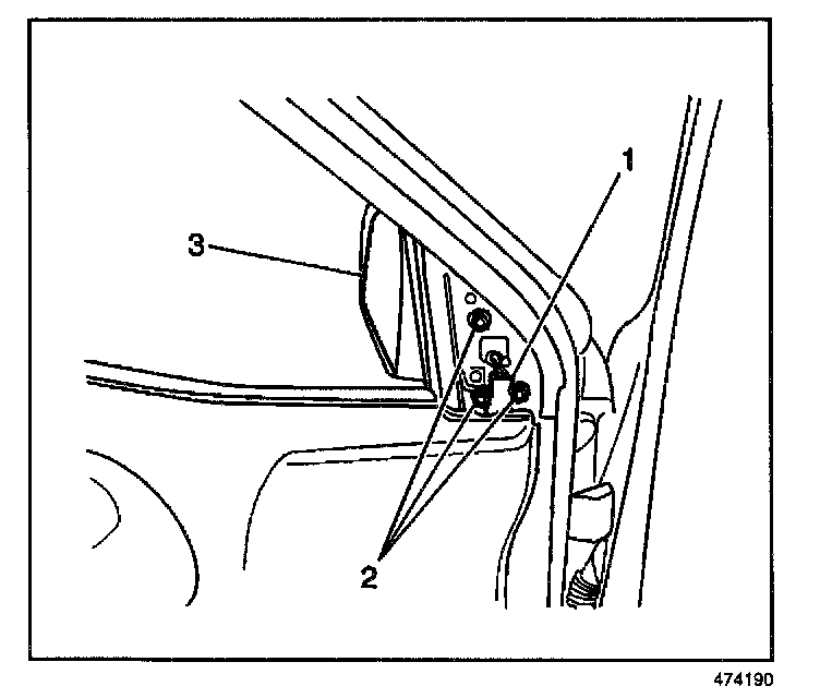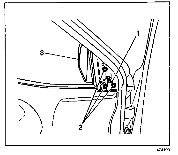 2. Remove the 3 bolts (2) and outside rearview mirror (3) from the door.