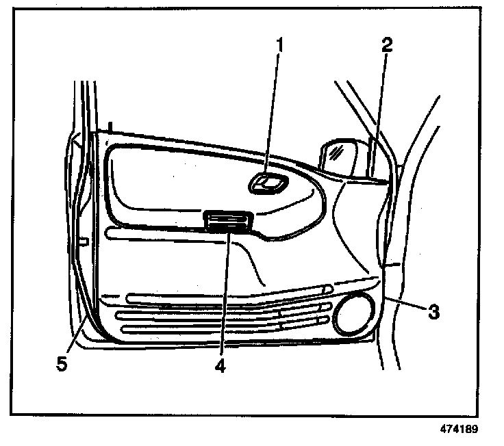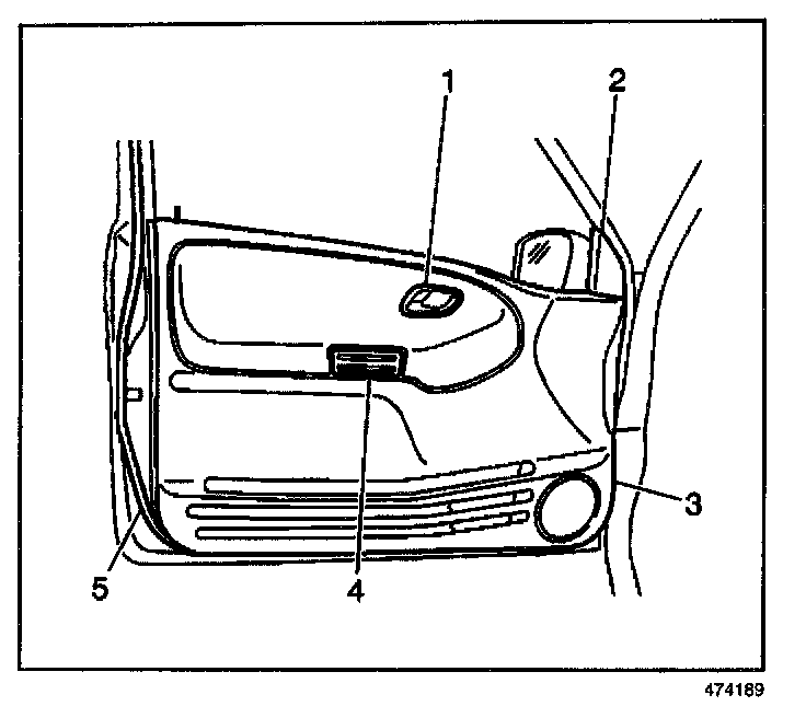 REMOVAL PROCEDURE1. Gently pry the outside rearview mirror opening cover (2) from the front side door.