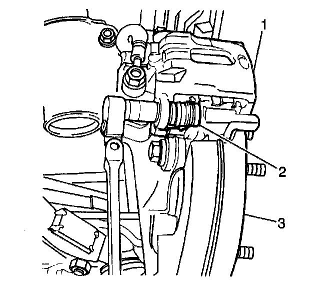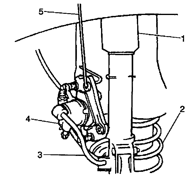 Notice: Do not allow the brake components to hang from the flexible brake hoses. Damage to the brake hoses could result.