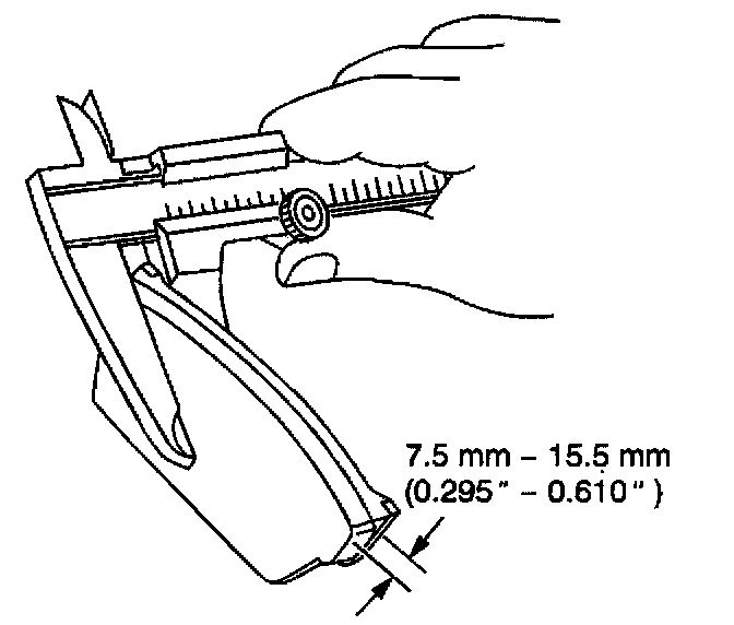 1. Measure the brake pads. The minimum thickness of the pad and the plate is 7.5 mm (0.295 inch).